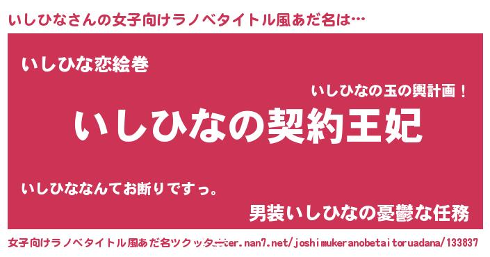 | 男性向けラノベタイトル風あだ名 | 『いしひなという概念が存在しない退屈な世界 』 |