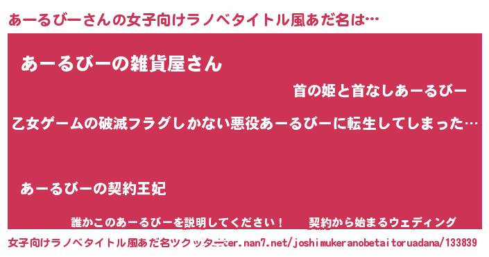 | 男性向けラノベタイトル風あだ名 | 『この素晴らしい世界にあーるびーを!』 |