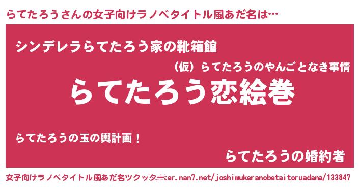 | 男性向けラノベタイトル風あだ名 | 『ノーゲーム・ノーラテタロウ』 |