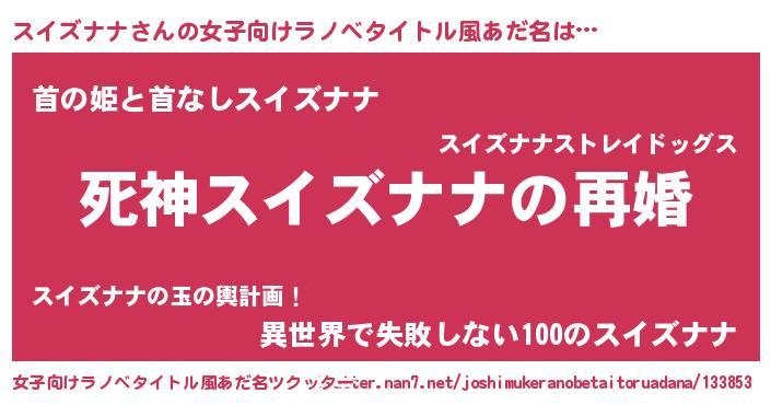 | ヒーロー風カッコイイあだ名 | 『慈愛の使者スイズナナ』『仮面スイダー』 |