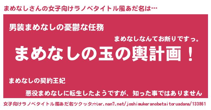 | 男性向けラノベタイトル風あだ名 | 『転生したらまめなしだった件』 |