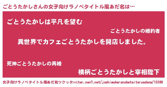 | ヘコむあだ名 | 『ごとうたかし(苦笑)』『ごとっ子』 |