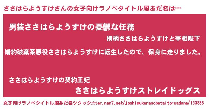 | 男性向けラノベタイトル風あだ名 | 『ササハラヨウスケスレイヤー』 |