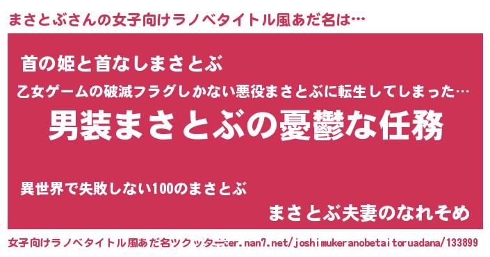 | ヒーロー風カッコイイあだ名 | 『慈愛の使者まさとぶ』『仮面マサダー』 |
