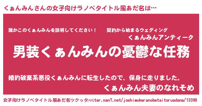 | 男性向けラノベタイトル風あだ名 | 『うちのくぁんみんが世界を掌握している!』 |
