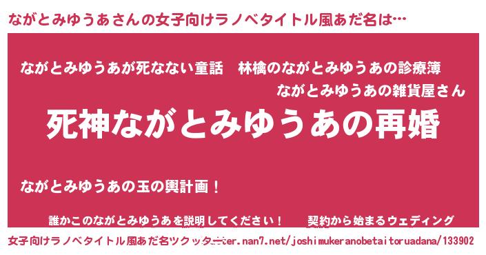 | ヒーロー風カッコイイあだ名 | 『慈愛の使者ながとみゆうあ』 |
