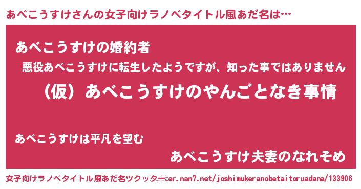 | 男性向けラノベタイトル風あだ名 | 『あべこうすけの憂鬱』 |