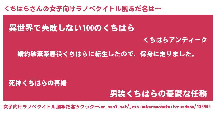| 男性向けラノベタイトル風あだ名 | 『クチハラスレイヤー』 |