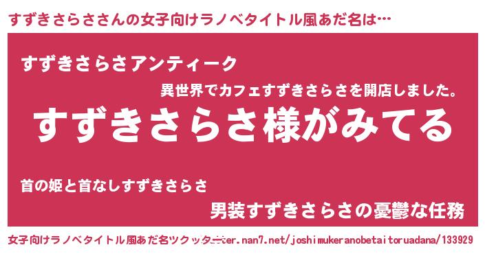 | 男性向けラノベタイトル風あだ名 | 『すずきさらさの嫁は女の子じゃないと思った?』 |