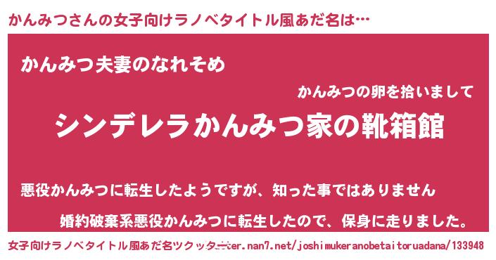 | 男性向けラノベタイトル風あだ名 | 『緋弾のカンミツ』『カンミツスレイヤー』 |