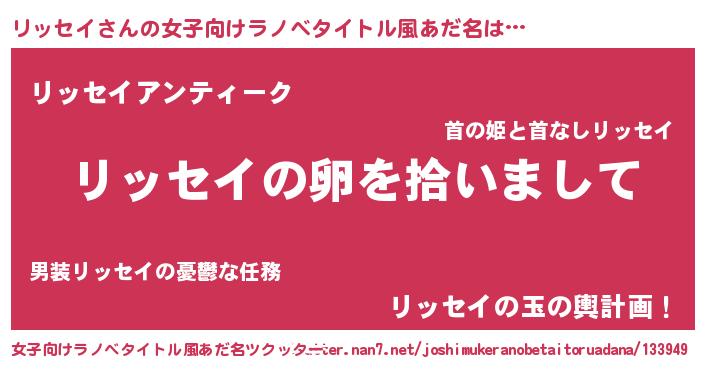 | ヒーロー風カッコイイあだ名 | 『幻影騎士リッ』『最強戦士リッセイ』 |