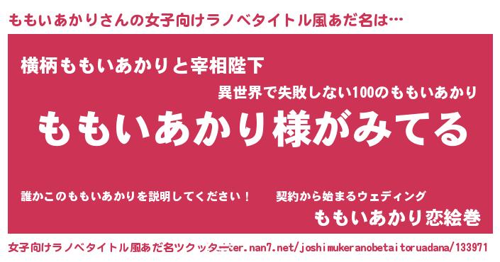 | 男性向けラノベタイトル風あだ名 | 『ももいあかりの嫁は女の子じゃないと思った?』 |