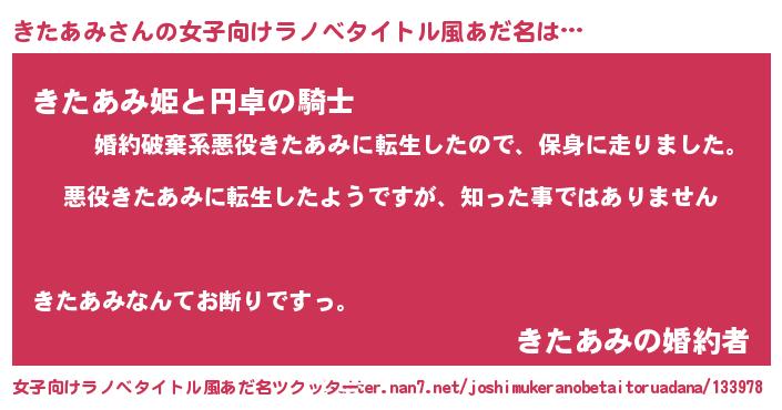 | ヒーロー風カッコイイあだ名 | 『仮面キタダー』『スーパーキタアミ』 |