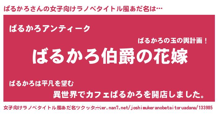| 男性向けラノベタイトル風あだ名 | 『やはりばるかろの青春ラブコメはまちがっている 』 |