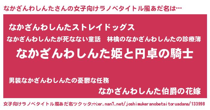 | 男性向けラノベタイトル風あだ名 | 『ナカザンワシンタアートオンライン』 |