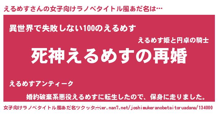 | 男性向けラノベタイトル風あだ名 | 『ノーゲーム・ノーエルメス』 |