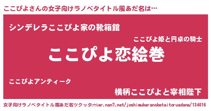 | 男性向けラノベタイトル風あだ名 | 『ノーゲーム・ノーココピヨ』 |