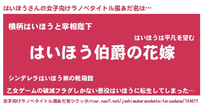 | 男性向けラノベタイトル風あだ名 | 『やはりはいほうの青春ラブコメはまちがっている 』 |