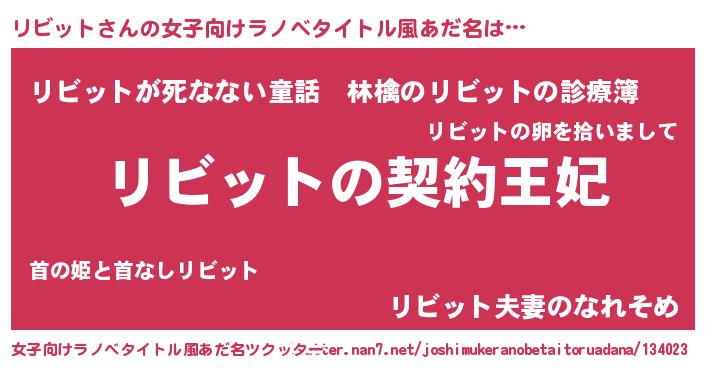 | 意味不明あだ名 | 『永久保存リビット』『自称リビット』 |