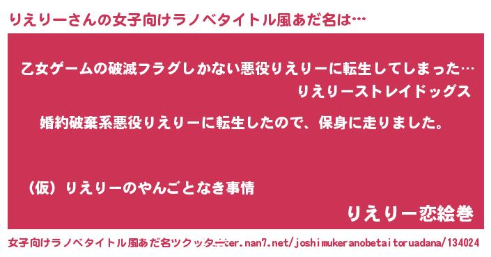 | 胡散臭い通販商品みたいなあだ名 | 『世界中を虜にした100年もののヴィンテージワイン…その名も「りえりー」』 |