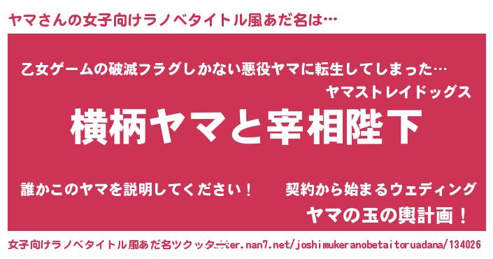 | 男性向けラノベタイトル風あだ名 | 『ヤマに滅ぼされるだけの簡単なお仕事です』 |