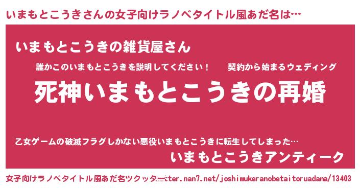 | 男性向けラノベタイトル風あだ名 | 『ノーゲーム・ノーイマモトコウキ』 |