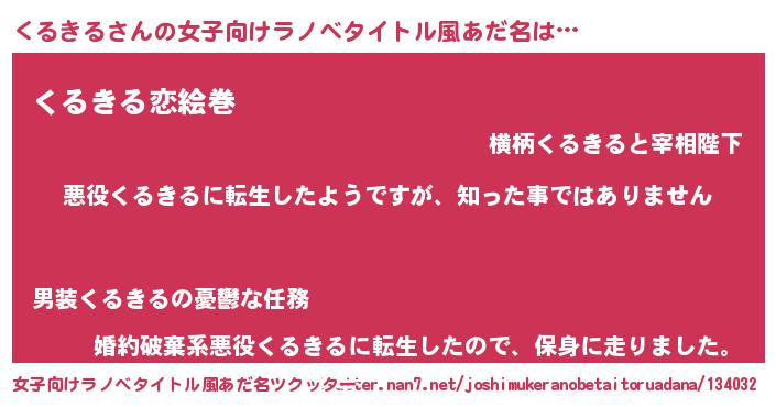| 意味不明あだ名 | 『住所不定無職くるきる(85歳)』 |