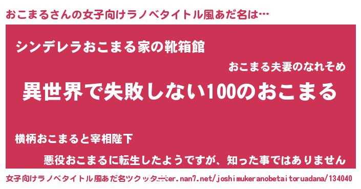 | 意味不明あだ名 | 『永久保存おこまる』『自称おこまる』 |