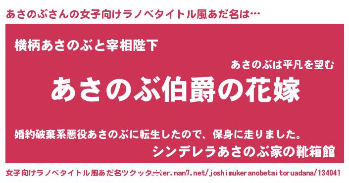| ファンタジー風あだ名 | 『エターナルアサノブー』 |