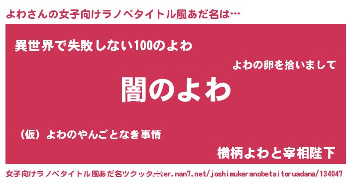 | 意味不明あだ名 | 『自称よわ』『永久保存よわ』 |