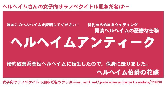 | 胡散臭い通販商品みたいなあだ名 | 『テレビで話題のアガリクス…その名も「ヘルヘイム」』 |