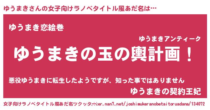 | 男性向けラノベタイトル風あだ名 | 『ゆうまき~年齢イコール彼女いない歴の魔法使い~』 |