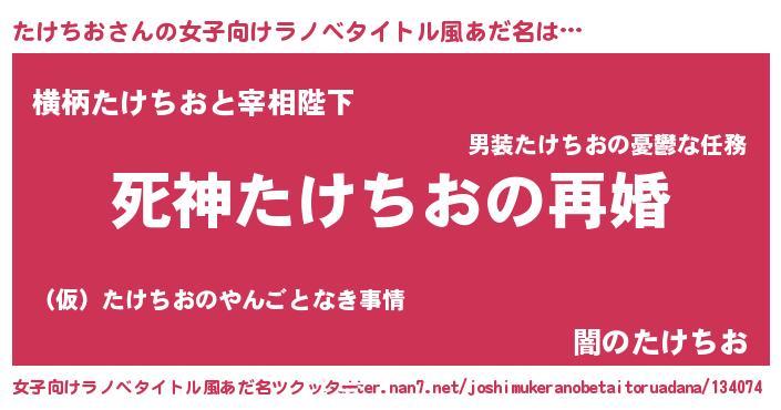 | 男性向けラノベタイトル風あだ名 | 『ノーゲーム・ノータケチオ』 |