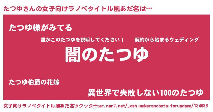 | 男性向けラノベタイトル風あだ名 | 『Re:たつゆから始める異世界生活』 |