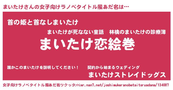 | 男性向けラノベタイトル風あだ名 | 『ノーゲーム・ノーマイタケ』 |