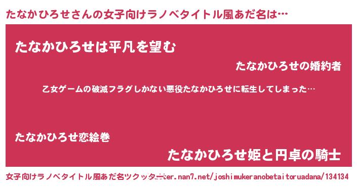 | 男性向けラノベタイトル風あだ名 | 『魔弾の王とたなかひろせ』 |