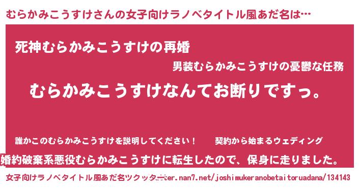 | 男性向けラノベタイトル風あだ名 | 『魔法科高校のむらかみこうすけ』 |