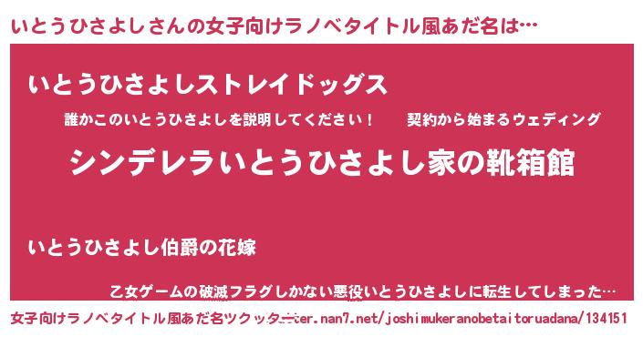 | 意味不明あだ名 | 『自称いとうひさよし』 |