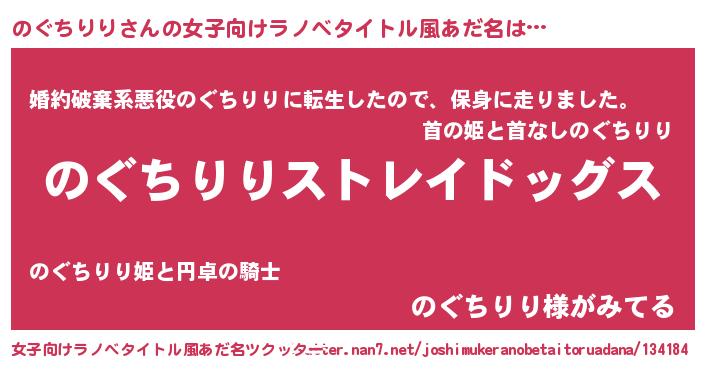 | 男性向けラノベタイトル風あだ名 | 『Re:のぐちりりから始める異世界生活』 |