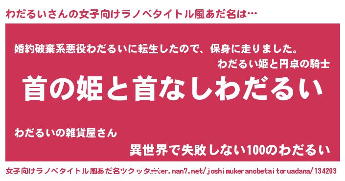 | 胡散臭い通販商品みたいなあだ名 | 『絶対に幸福をもたらす水素水…その名も「わだるい」』 |
