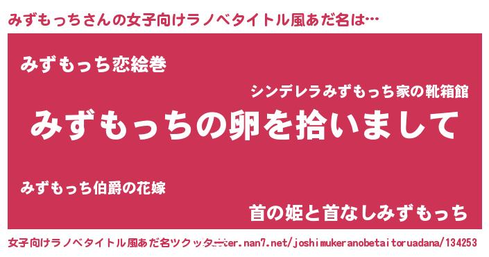 | 男性向けラノベタイトル風あだ名 | 『みずもっちの嫁は女の子じゃないと思った?』 |