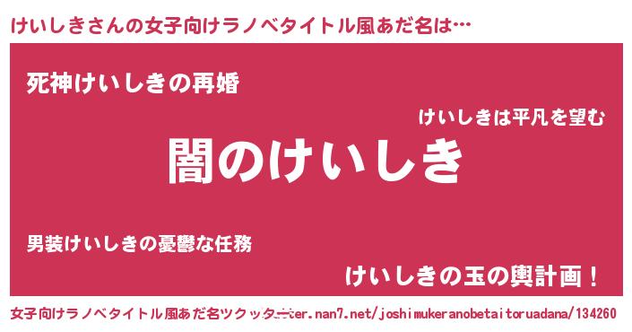| 肩書あだ名 | 『けいしき閣下』『けいしき助手』 |