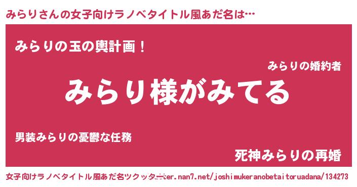 | 意味不明あだ名 | 『とにかく怪しいみらり』『自称みらり』 |
