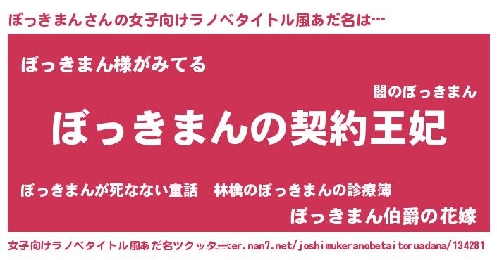 | 胡散臭い通販商品みたいなあだ名 | 『来世でも幸せになれる水素水…その名も「ぼっきまん」』 |