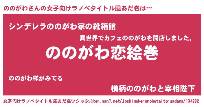| 男性向けラノベタイトル風あだ名 | 『ノーゲーム・ノーノノガワ』 |