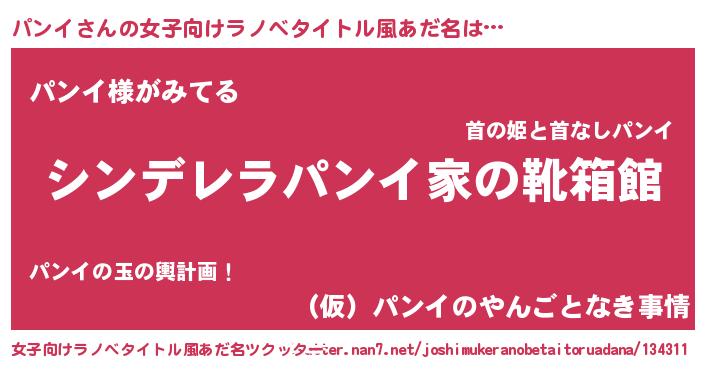 | 胡散臭い通販商品みたいなあだ名 | 『信頼と実績のサプリメント…その名も「パンイ」』 |