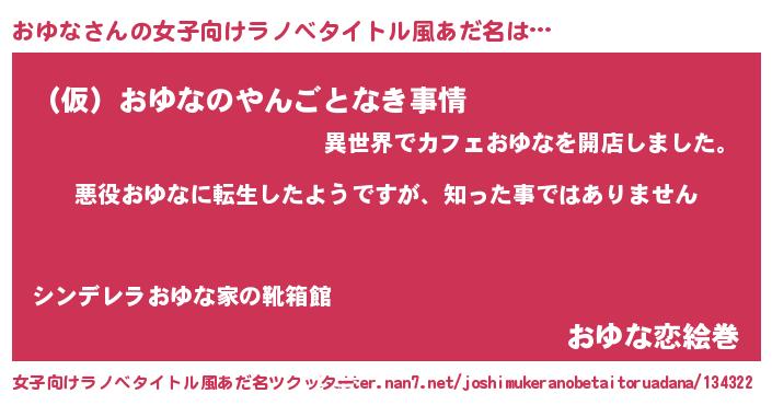 | 胡散臭い通販商品みたいなあだ名 | 『あなたにだけ特別に提供する限定10本のレアな日本酒…その名も「おゆな」』 |