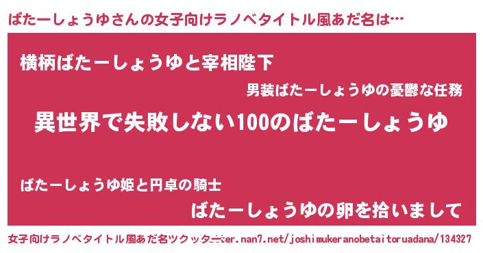 | 意味不明あだ名 | 『永久保存ばたーしょうゆ』 |