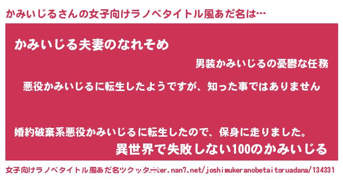 | 胡散臭い通販商品みたいなあだ名 | 『あなたにだけ特別に提供する世界で10本だけ現存している希少なブランデー…その名も「かみいじる」』 |