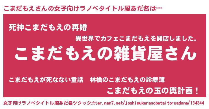 | 男性向けラノベタイトル風あだ名 | 『やはりこまだもえの青春ラブコメはまちがっている 』 |
